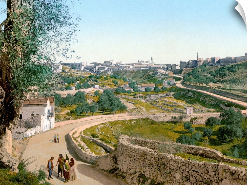 <p>Jerusalem, C1900. Road Leading From the Railroad Station Into the Old City. Photochrome, C1900.</p>