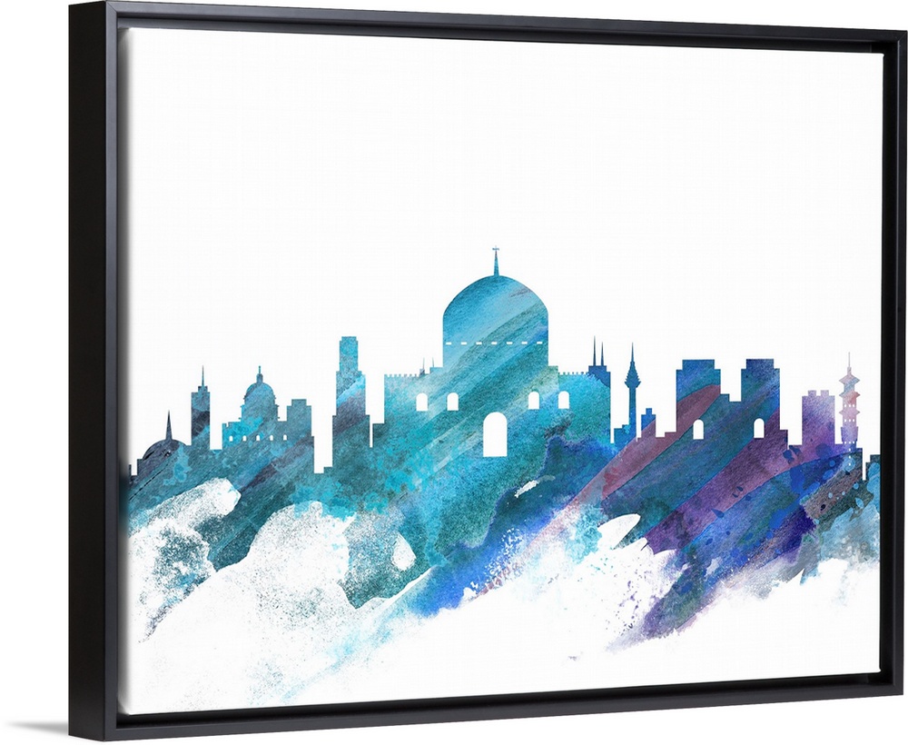 <p>Contemporary watercolor skyline of Jerusalem in blue and purple tones.</p>