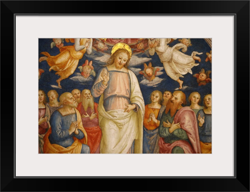 <p>Detail of the ceiling showing Jesus and the Apostles, Room of the Fire in the Borgo, Vatican Museum, Vatican, Rome, Lazio, Italy, Europe.</p>