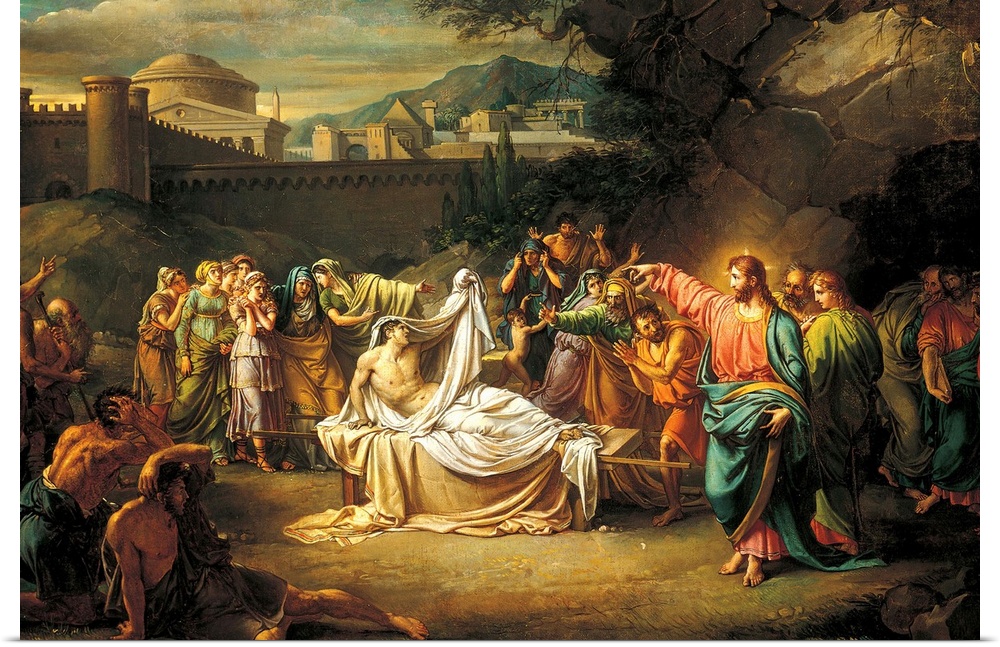 <p>Jesus Christ Raises from the Dead the Son of Naims Widow, by Jean-Baptiste Wicar, 1806 - 1816, 19th Century, - Italy, Lazio, Rome, National Academy of San Luca, art gallery. All. Jesus Christ miracle resurrection funeral dead body corpse son young man she</p>