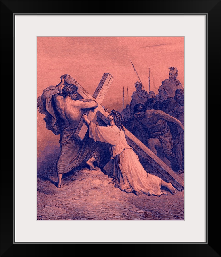 <p>Jesus falling beneath the cross. Nineteenth-century engraving by Gustave Dore, 1832 - 1883. Cassell's Dore Gallery by Edmund Ollier. Cassell & Company Limited, London, Paris, New York & Melbourne.</p>