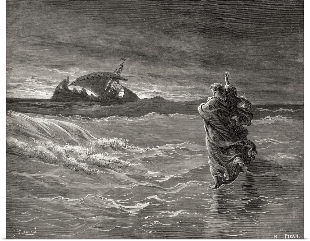 <p>Engraving From The Dore Bible Illustrating John VI 19 To 21, Jesus Walking On The Sea, By Gustave Dore, 1832-1883, French Artist And Illustrator.</p>