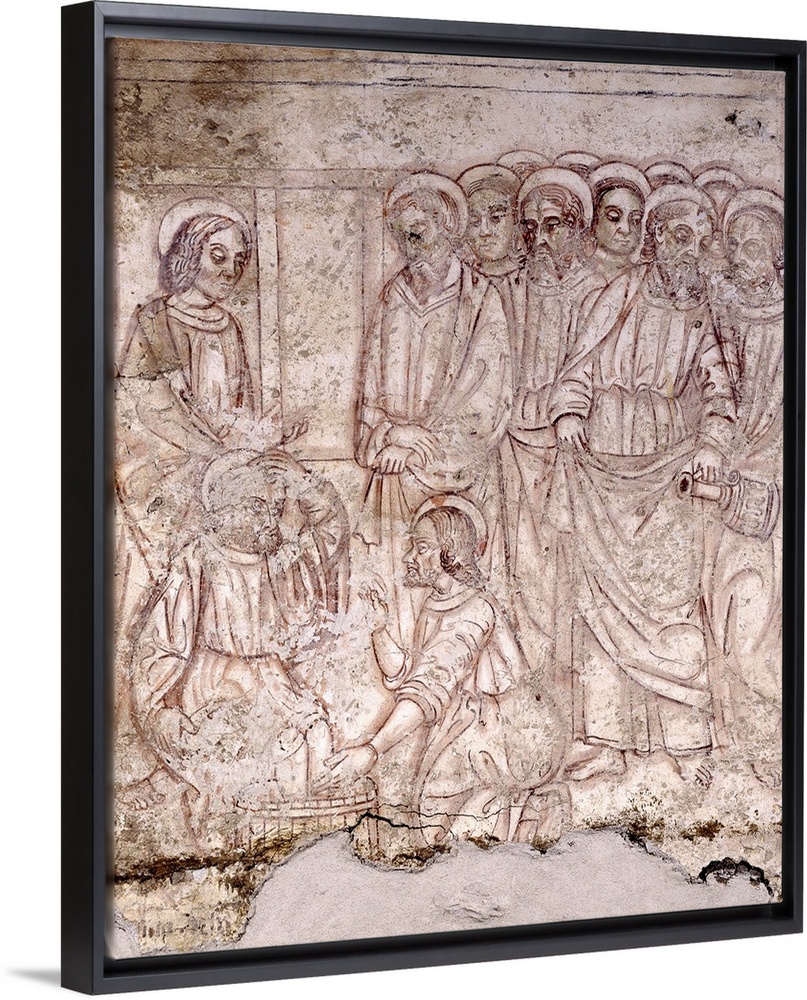 <p>Italy, Lombardy, Provaglio d'Iseo, former Convent of Saint Peter in Lamosa. Whole artwork view. Jesus, on his knees, washing Peter's feet in a basin, while the Apostles watching. - 1992/Paolo e Federico Manusardi/Mondadori Portfolio/Everett Collection - FOR EDITORIAL USE ONLY (1836592)</p>