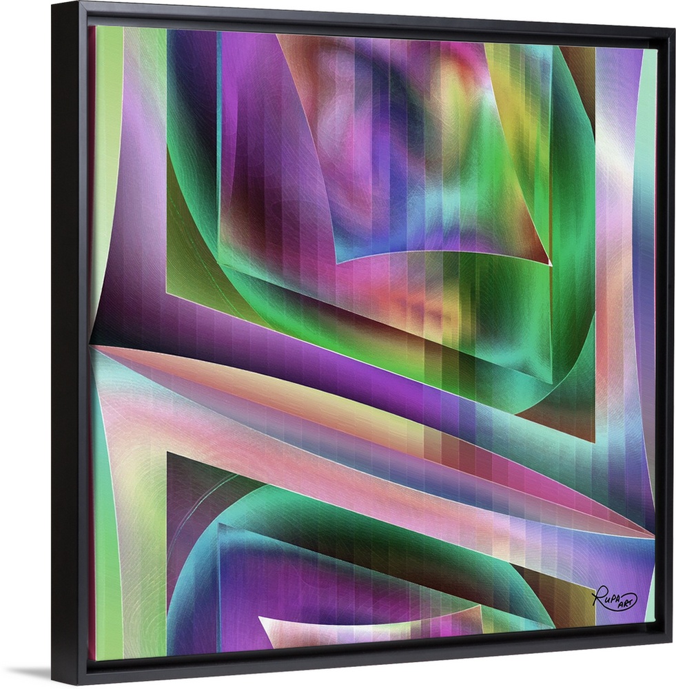 <p>Contemporary digital artwork of intersecting geometric shapes in green and purple.</p>
