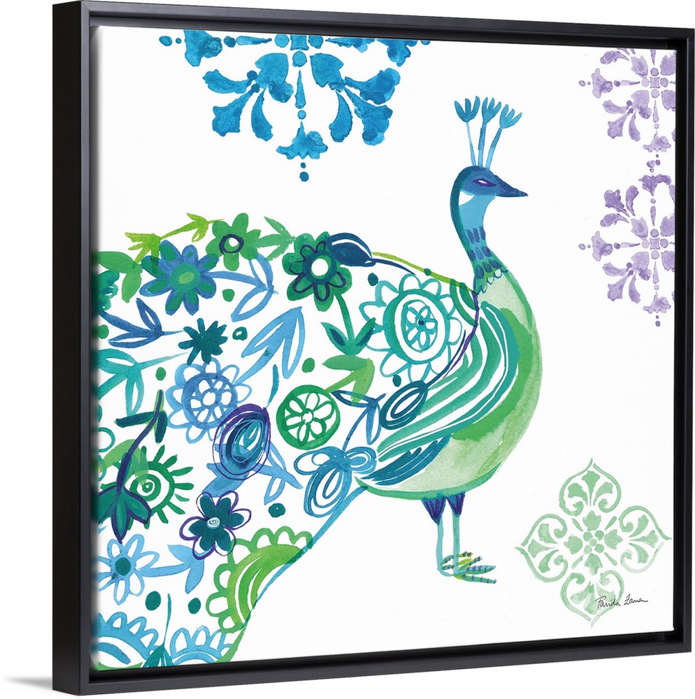 Art Bohemian Wildlife Decorative Art Green Wall Art Painting Wildlife Bird Peacock Farida Zaman