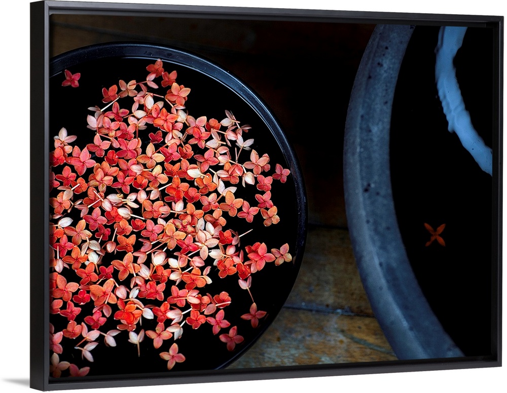 <p>Fine art photograph of pink Jasmine flowers floating in a pot.</p>