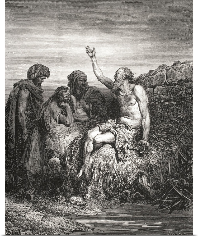 <p>Engraving From The Dore Bible Illustrating Job VI, 1 To 4, Job And His Friends, By Gustave Dore, 1832-1883, French Artist And Illustrator.</p>