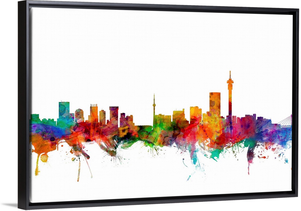 <p>Watercolor artwork of the Johannesburg skyline against a white background.</p>