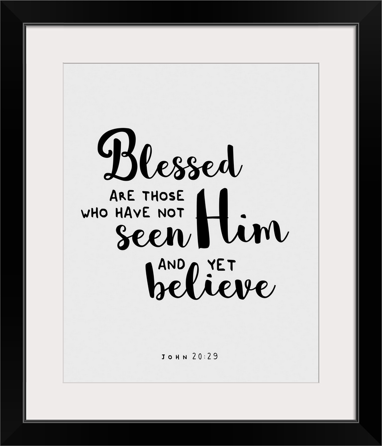 <p>Handlettered Bible verse reading Blessed are those who have no seen Him and yet believe.</p>