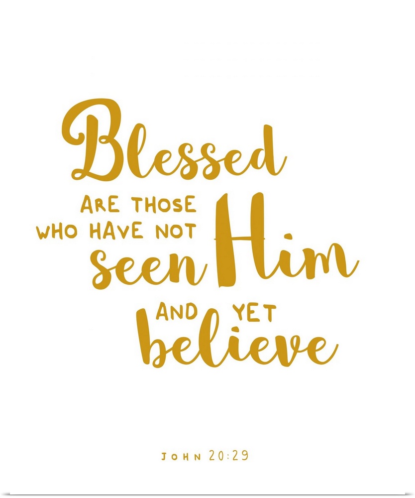 <p>Handlettered Bible verse reading Blessed are those who have no seen Him and yet believe.</p>
