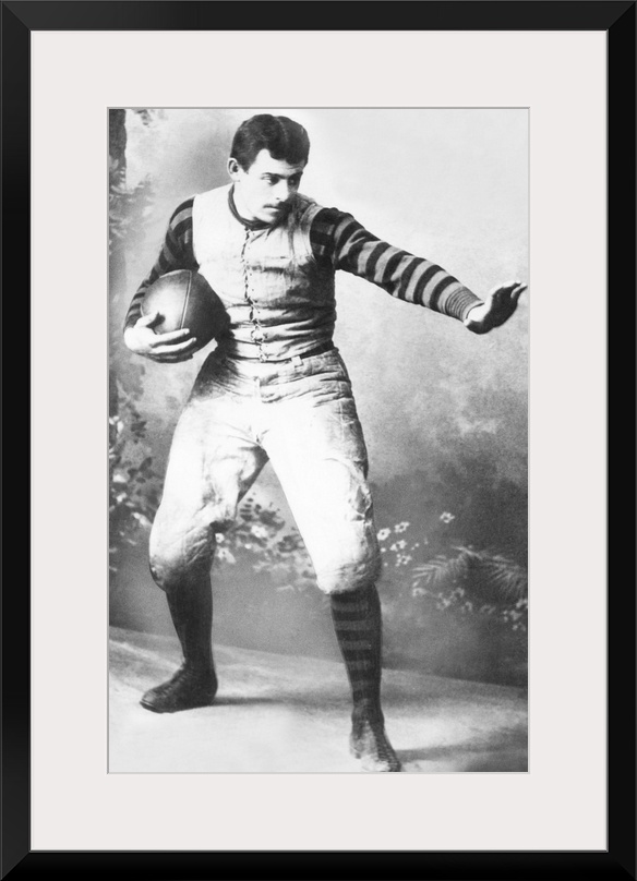 <p>John Heisman in his University of Pennsylvania football uniform, c. 1891. He played football at Brown Univ. 1887-89, and at the Univ. of Pennsylvania 1890-91. After graduating from the Univ. of Pennsylvania Law School in 1892, he began his coaching career at Oberlin College. The Heisman Memorial Trophy, is awarded each year to the most outstanding collegiate football player.</p>
