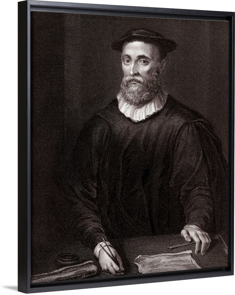 <p>John Knox (1505-1572), Scottish clergyman. Knox was born at Haddington in East Lothian, Scotland, and educated at the University of St. Andrews in theology. He worked as a notary-priest (not a parochial priest) and was influenced by early church reformers. He was captured by the French during fighting at St. Andrews and taken to France before being exiled to England. When catholicism was reestablished in England Knox went to Geneva where he met John Calvin. In 1559 he returned to Scotland and led the reformation movement in the Church. The Presbyterian Church eventually replaced catholicism in Scotland, supported by parliament and the nobility. This engraving was published in 'Portraits of Illustrious Personages of Great Britain' by Edmund Lodge in 1835.</p>