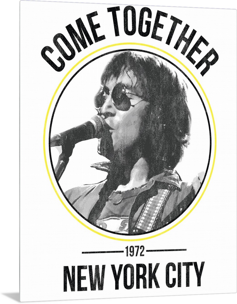 <p>Come Together tour poster from New York City in 1972 with a black and white photograph of John Lennon in the center.</p>