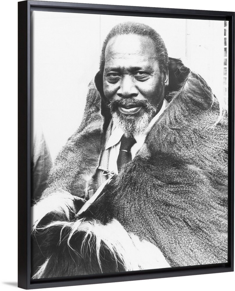 <p>Jomo Kenyatta, future President of Kenya, in a monkey skin given him by Kikuyu (Gikuyu) tribesmen. Aug. 21, 1961. Kikuyu was the largest ethnic group in Kenya, but still represented less than 25 of the population. As leader of Kenya's KANU (Kenya African National Union) Kenyatta advocated, unified state with a strong central government over an ethnic-federal state favored by his opposition.</p>