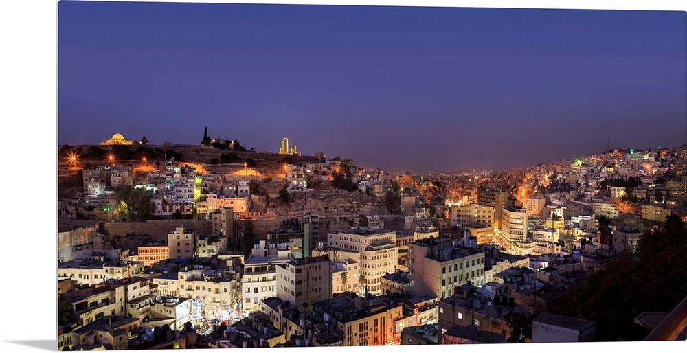 <p>Jordan, Amman, Amman, Central avenue with a Roman citadel on top of the hill in the background.</p>