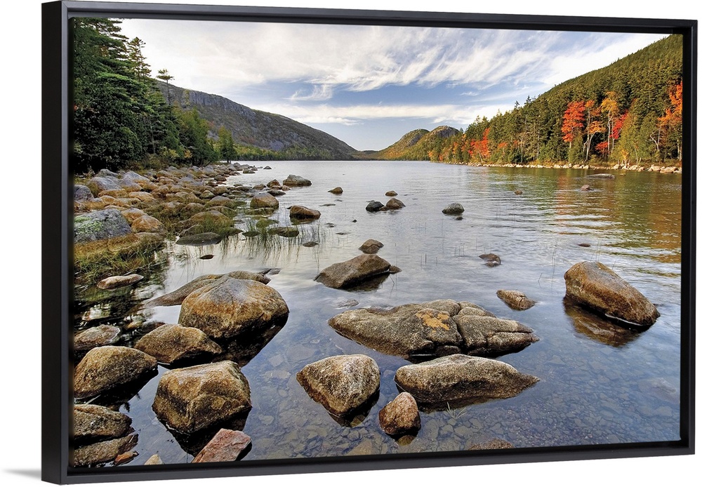 <p>Boulders with North and South Bubble Mountain, Jordan Pond, Acadia National Park, Maine</p>
