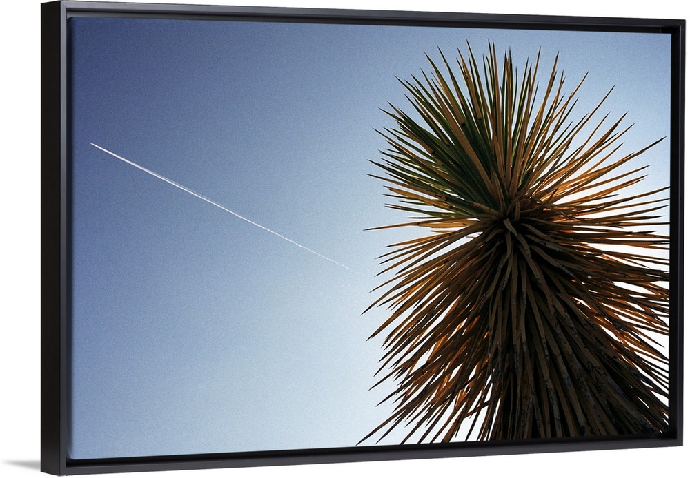 <p>A plane flies over a cactus in Joshua Tree National Park in Southern California.</p>