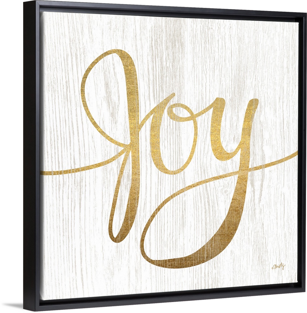 <p>The word Joy is gold colored letters over white background with wood grain texture overlaid.</p>