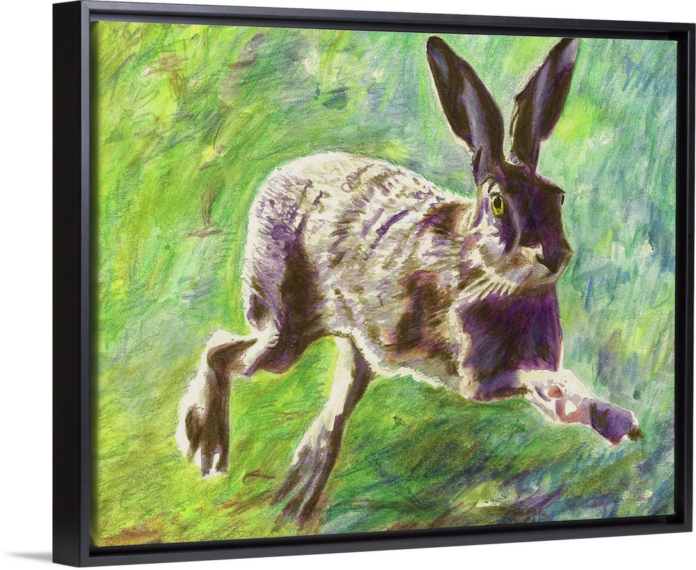 <p>Contemporary painting of a hare leaping as it runs.</p>