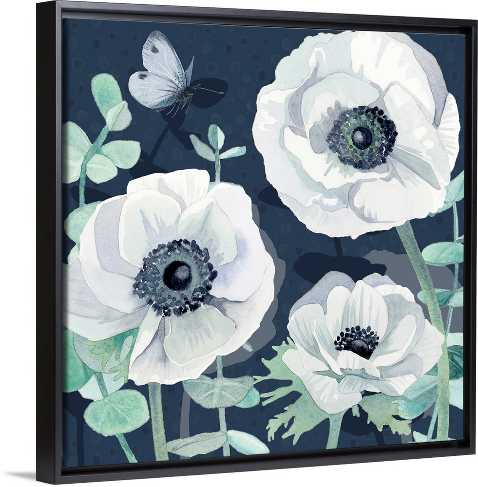 Art Blue Wall Art Decorative Art Florals Poppy Painting Watercolor