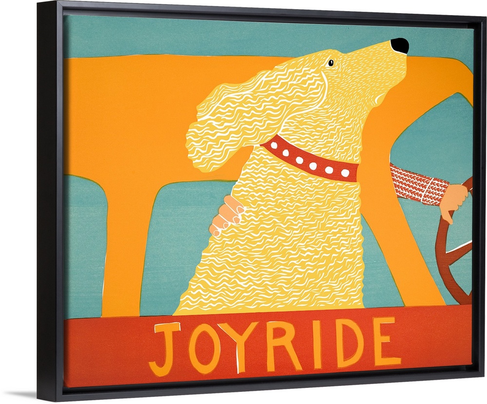 <p>Illustration of a yellow lab riding in a car with its head out of the window and the phrase "Joyride" written at the bottom.</p>