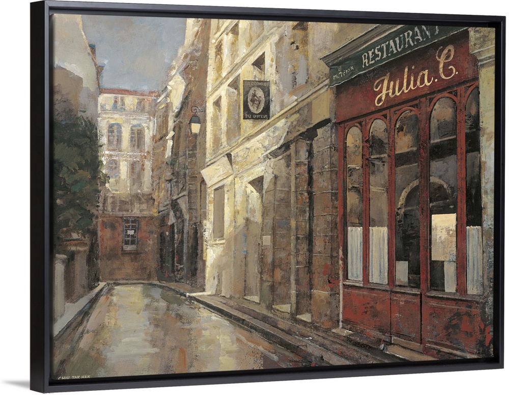 <p>Contemporary painting of a restaurant storefront downtown in a city.</p>