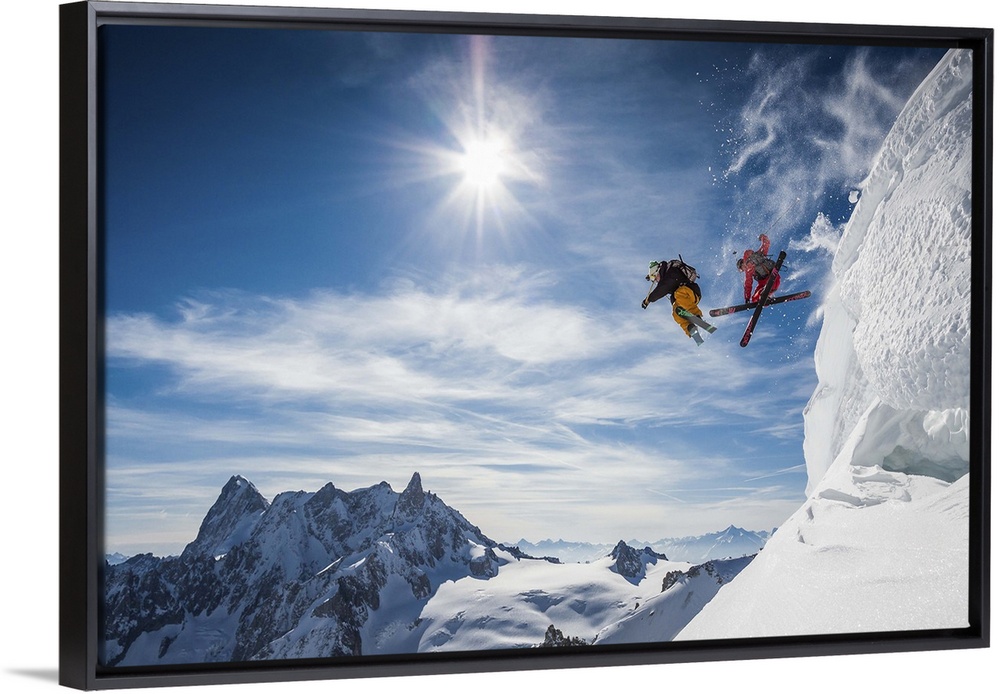 <p>Candide Thovex and Guerlain Chicherit jumping a cliff in the Vallee blanche with its stunning scenery. Chamonix, Haute Savoie, France.</p>