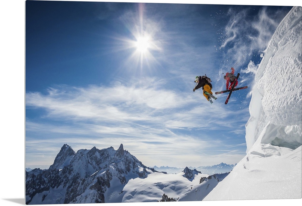 <p>Candide Thovex and Guerlain Chicherit jumping a cliff in the Vallee blanche with its stunning scenery. Chamonix, Haute Savoie, France.</p>