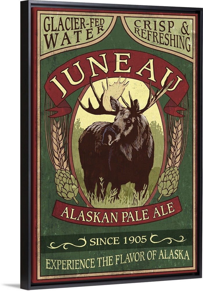 Art Drinks Beer Lantern Press Alaska Wildlife Moose and Elk