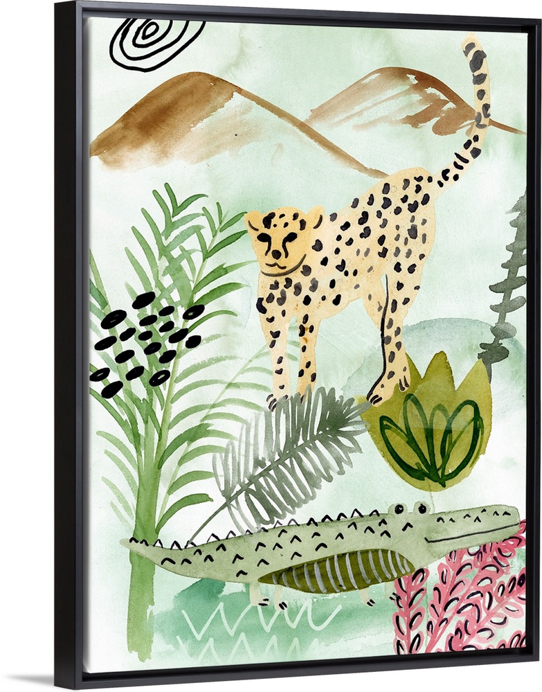 Art College Dorm Décor Tropical Oasis Decorative Art Green Wall Art Painting Melissa Wang Watercolor Wildlife Cheetah Gators and Crocs