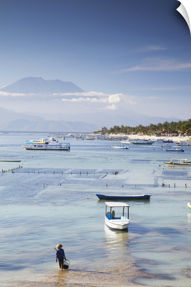 <p>Jungutbatu beach with Mount Agung in background, Nusa Lembongan, Bali, Indonesia</p>