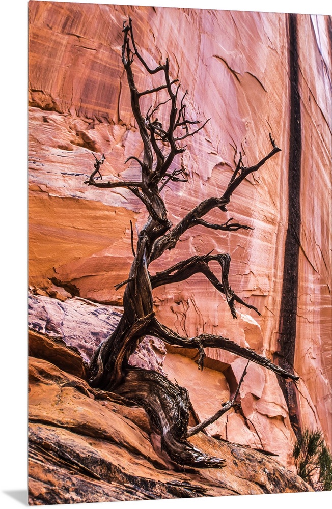 <p>Leafless juniper tree (Juniper scopulorum) and red, sandstone rock wall in the Grand StaircaseoEscalante National Monument, Utah, United States of America</p>
