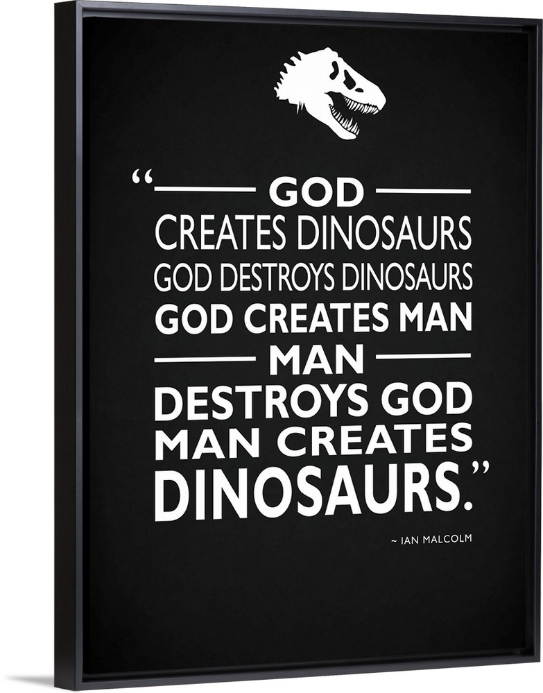<p>"God creates dinosaurs God destroys dinosaurs God created man man destroys God man creates dinosaurs." -Ian Malcolm</p>
