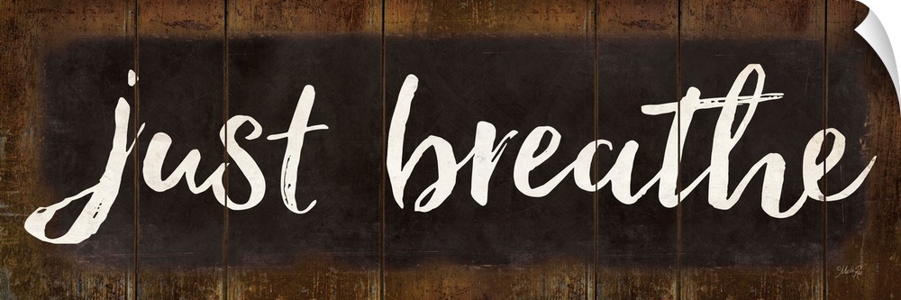 <p>"Just Breathe" in white handlettered script on a weathered brown background.</p>