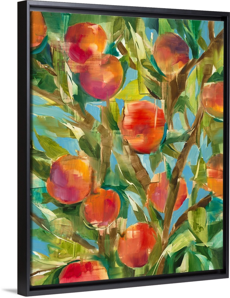 Art Art by Decor Style Transitional Kitchen Wall Art Mid-Century Kitchen Contemporary Art Plants and Flowers Florals Leaves Food Fruit Peach Liz Jardine Painting