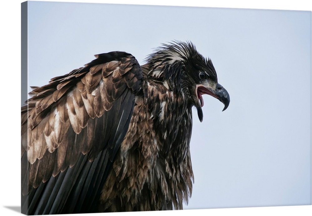 <p>Juvenile bald eagle (haliaeetus leucocephalus) calling; Alaska, united states of America.</p>