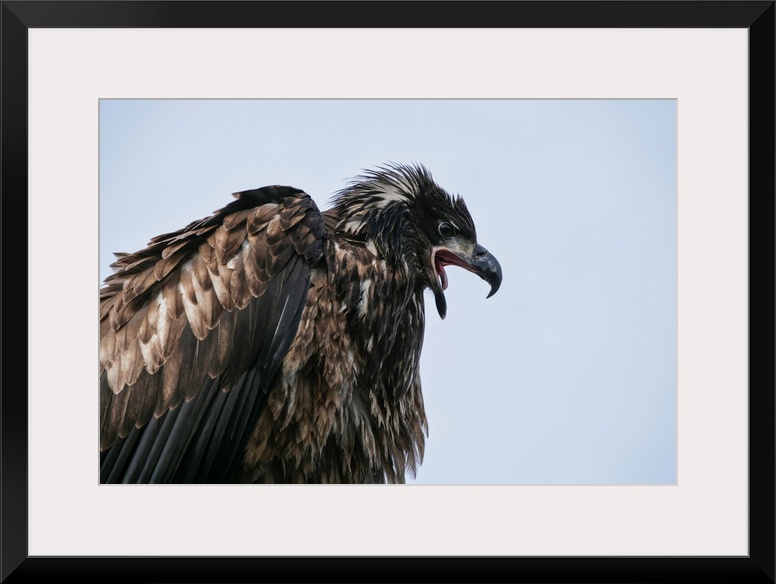 <p>Juvenile bald eagle (haliaeetus leucocephalus) calling; Alaska, united states of America.</p>