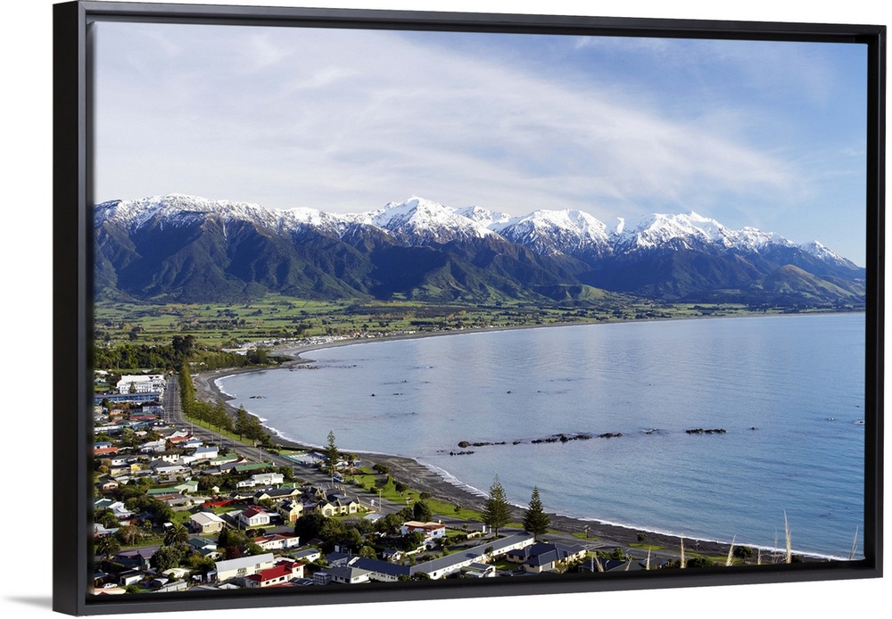 <p>Kaikoura Township and Seaward Kaikoura Ranges, Marlborough, South Island, New Zealand</p>