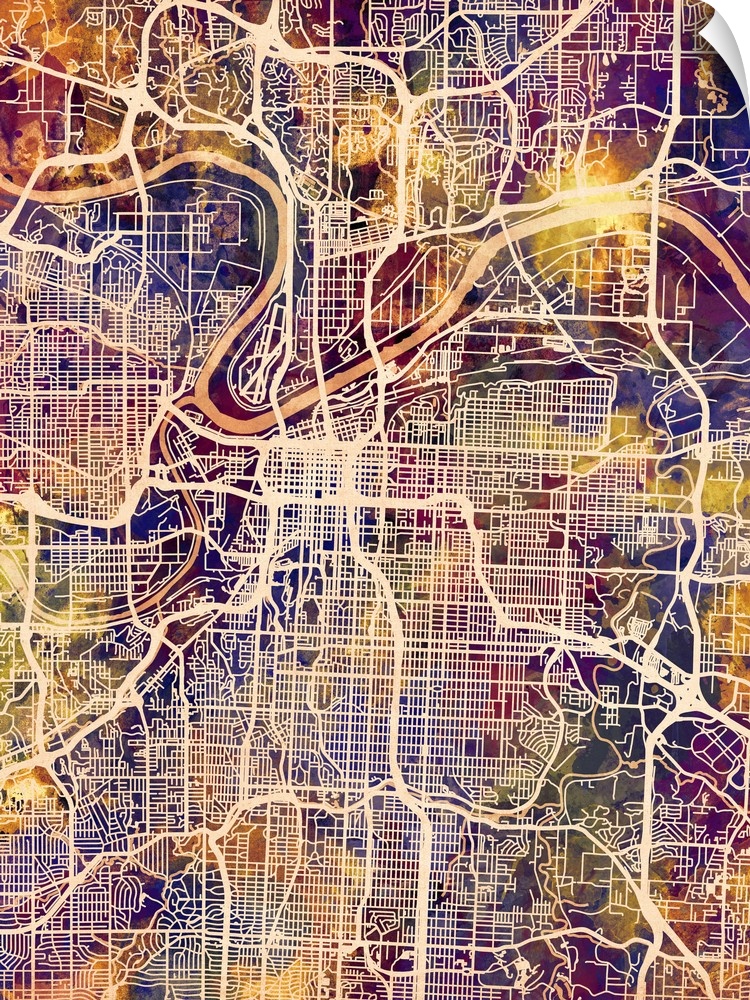 <p>Watercolor street map of Kansas City, Missouri, United States</p>