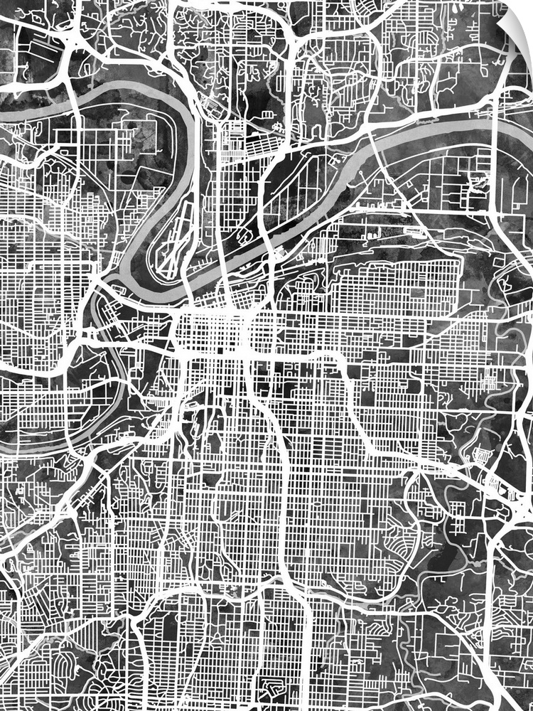 <p>Watercolor street map of Kansas City, Missouri, United States</p>