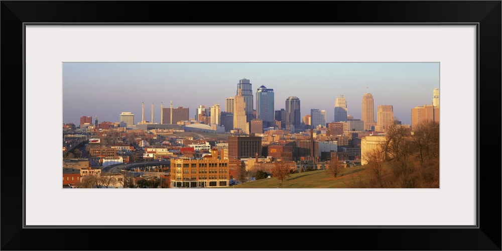 <p>Big, landscape photograph taken from a hillside, of the Kansas City skyline, including the Power and Light building.</p>