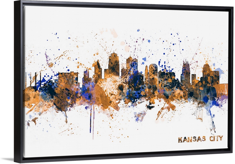 <p>Contemporary piece of artwork of the Kansas City skyline made of colorful paint splashes.</p>