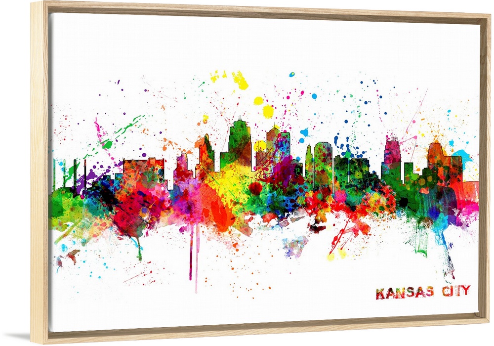 <p>Contemporary piece of artwork of the Kansas City skyline made of colorful paint splashes.</p>