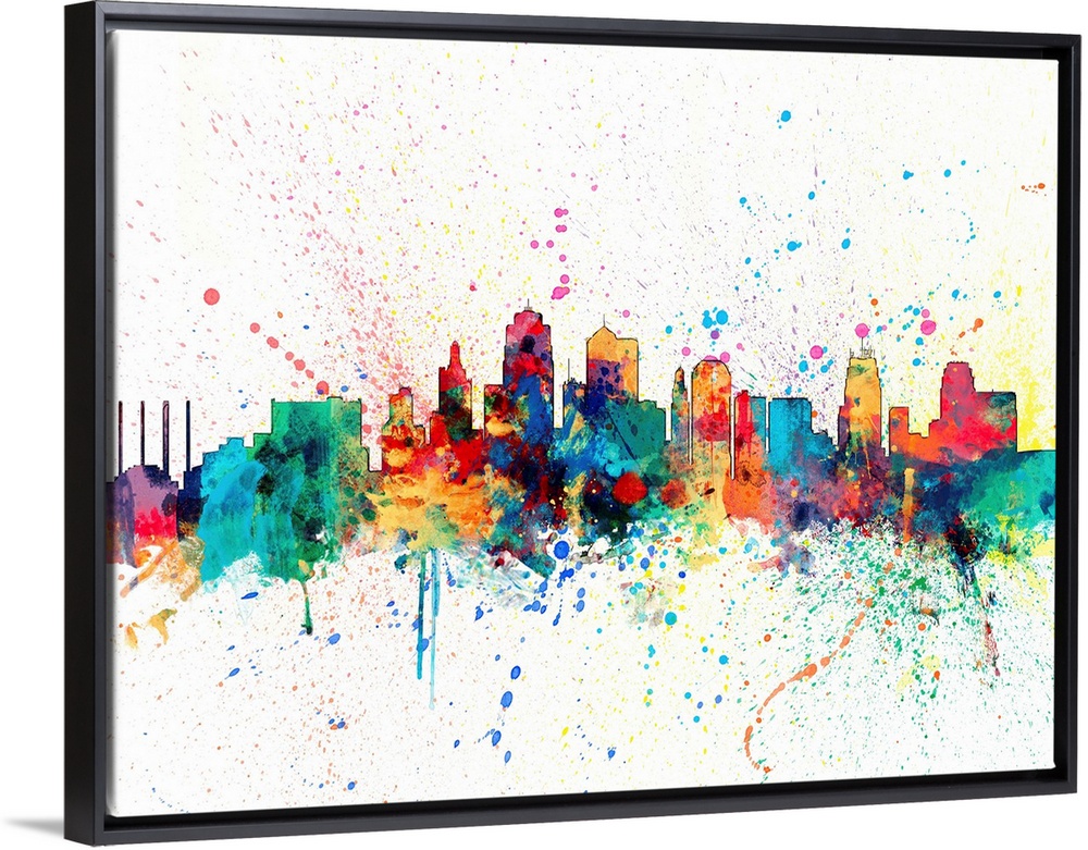 <p>Wild and vibrant paint splatter silhouette of the Kansas skyline.</p>