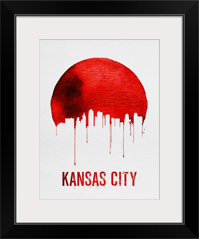 <p>Contemporary watercolor artwork of the Kansas city skyline, in silhouette.</p>