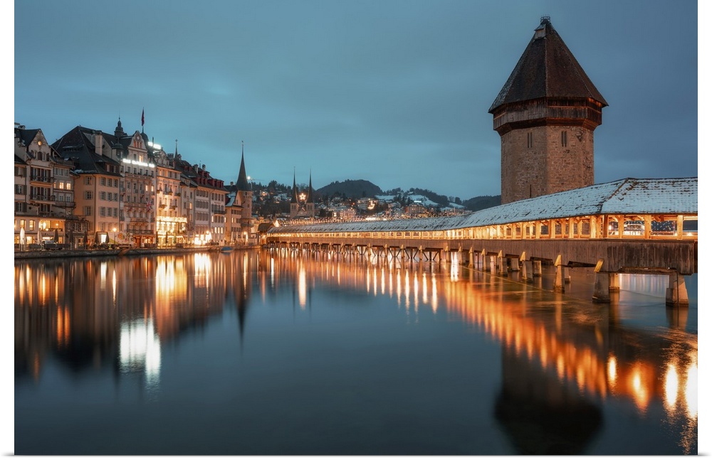 <p>Kapellbrucke (Chapel Bridge) in winter, wooden footbridge, Lucerne, Switzerland, Europe</p>