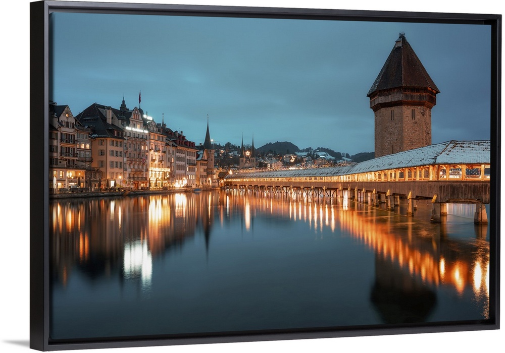 <p>Kapellbrucke (Chapel Bridge) in winter, wooden footbridge, Lucerne, Switzerland, Europe</p>