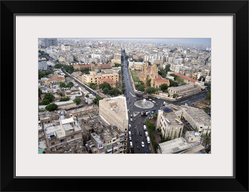 <p>Roundabout, DJ Science College, SM Law College, Memon Masjid, UBL Bank, Cars, Bikes, Cloudy weather.</p>