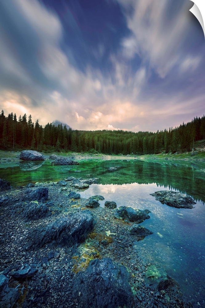 <p>Karersee Lake and Dolomite Alps in the morning, Northern Italy.</p>