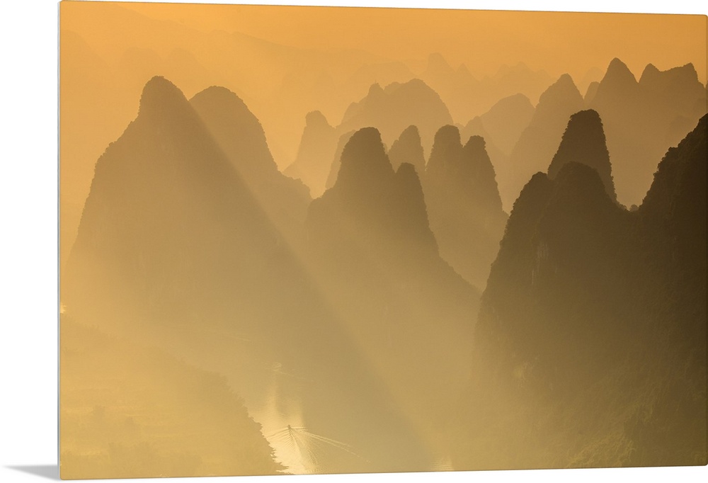 <p>Karst limestone peaks of Yangshou and the Li River, Guangxi-Yangshuo, China.</p>